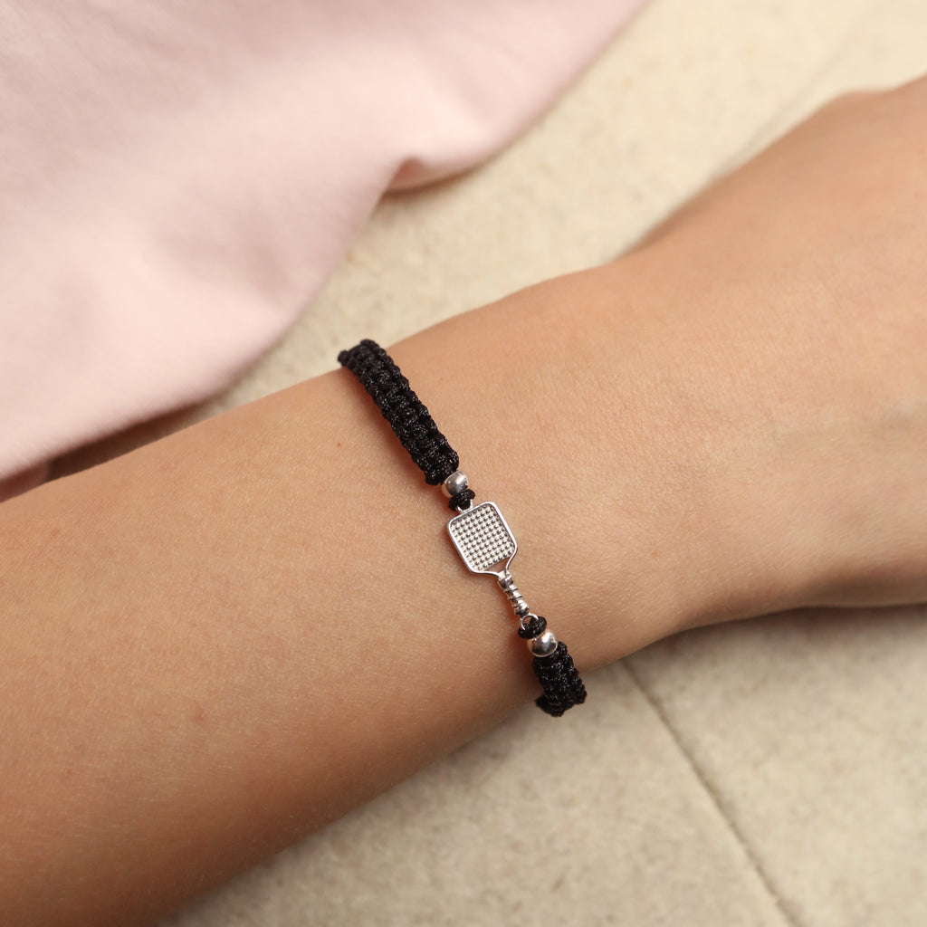 This sporty-chic macrame bracelet is made for those who love the sound of the paddle, the thrill of the rally, and the joy of friendly competition.